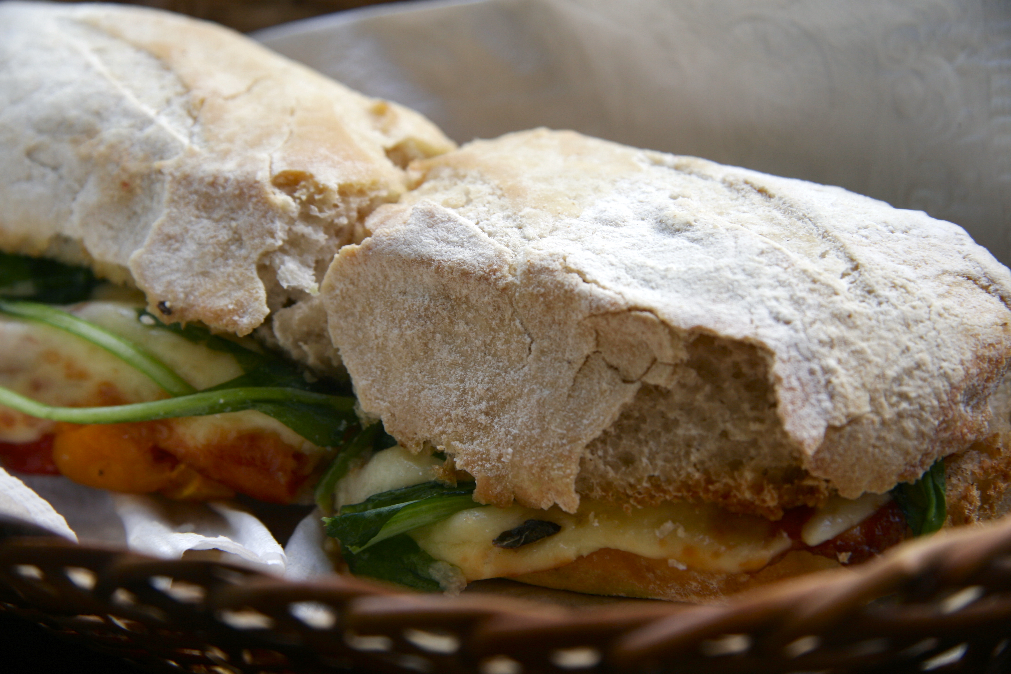 The grilled chicken and gruyere sandwich is also a fan favorite, almost always making an appearance on their ever-changing seasonal menu: chicken, gruyere cheese, caramelized onions and greens.