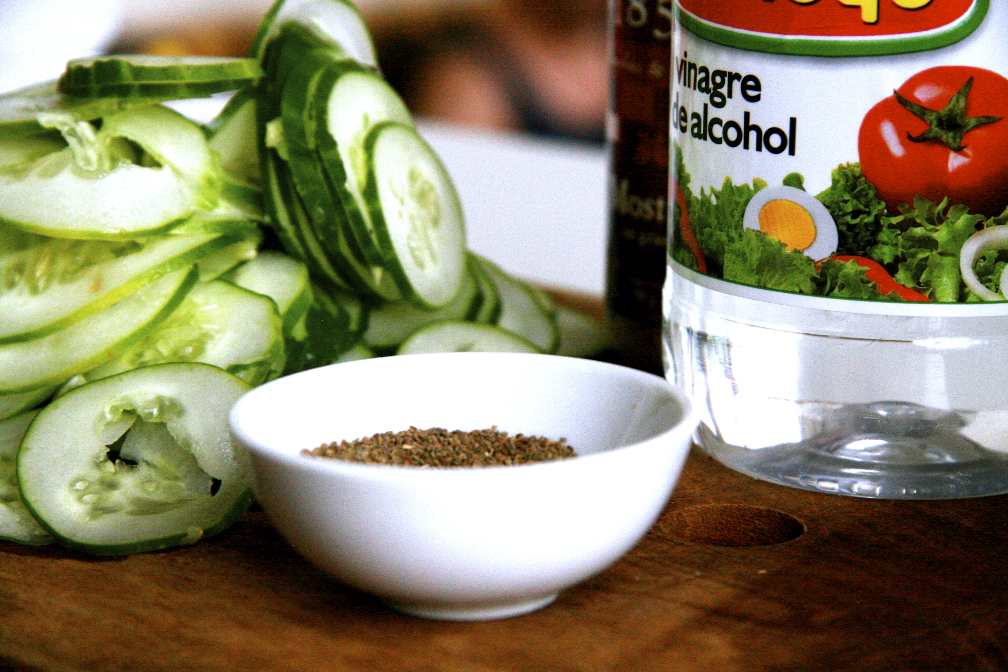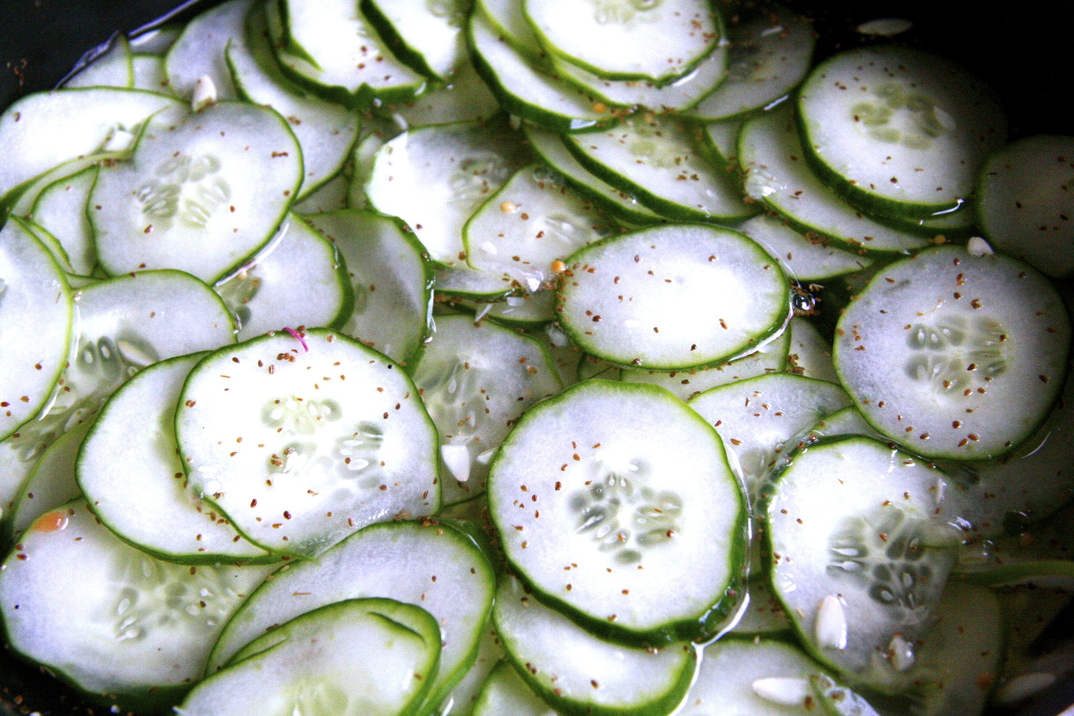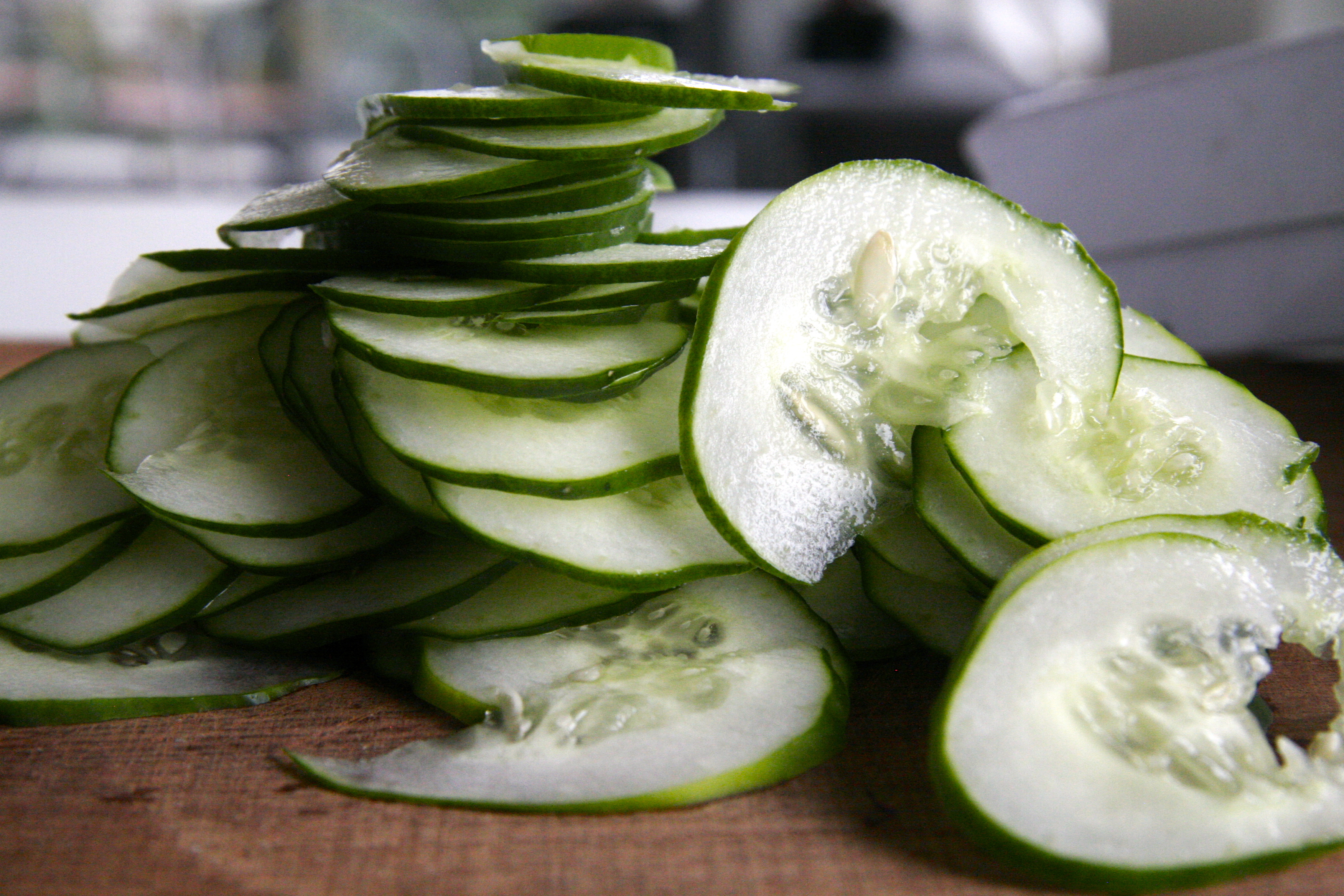 I slice my cucumbers extra thin because I like it like that, perfect to shove a bunch into a grilled cheese sandwich.